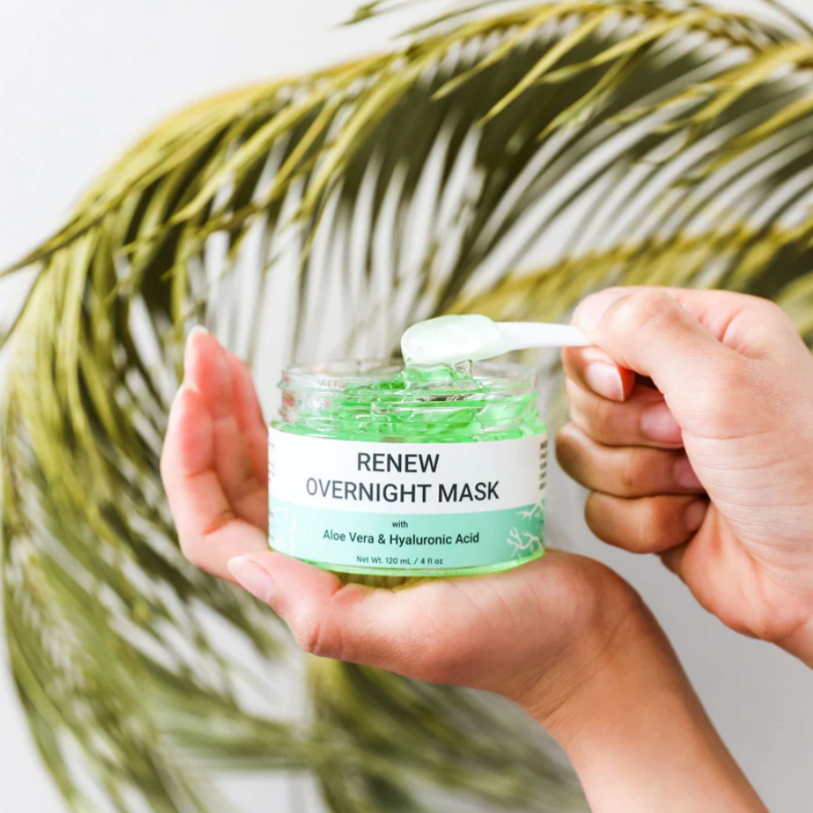 Renew Overnight Mask with Aloe Vera & Hyaluronic Acid được thiết kế để giúp các thành phần thấm sâu hơn khi bạn ngủ.